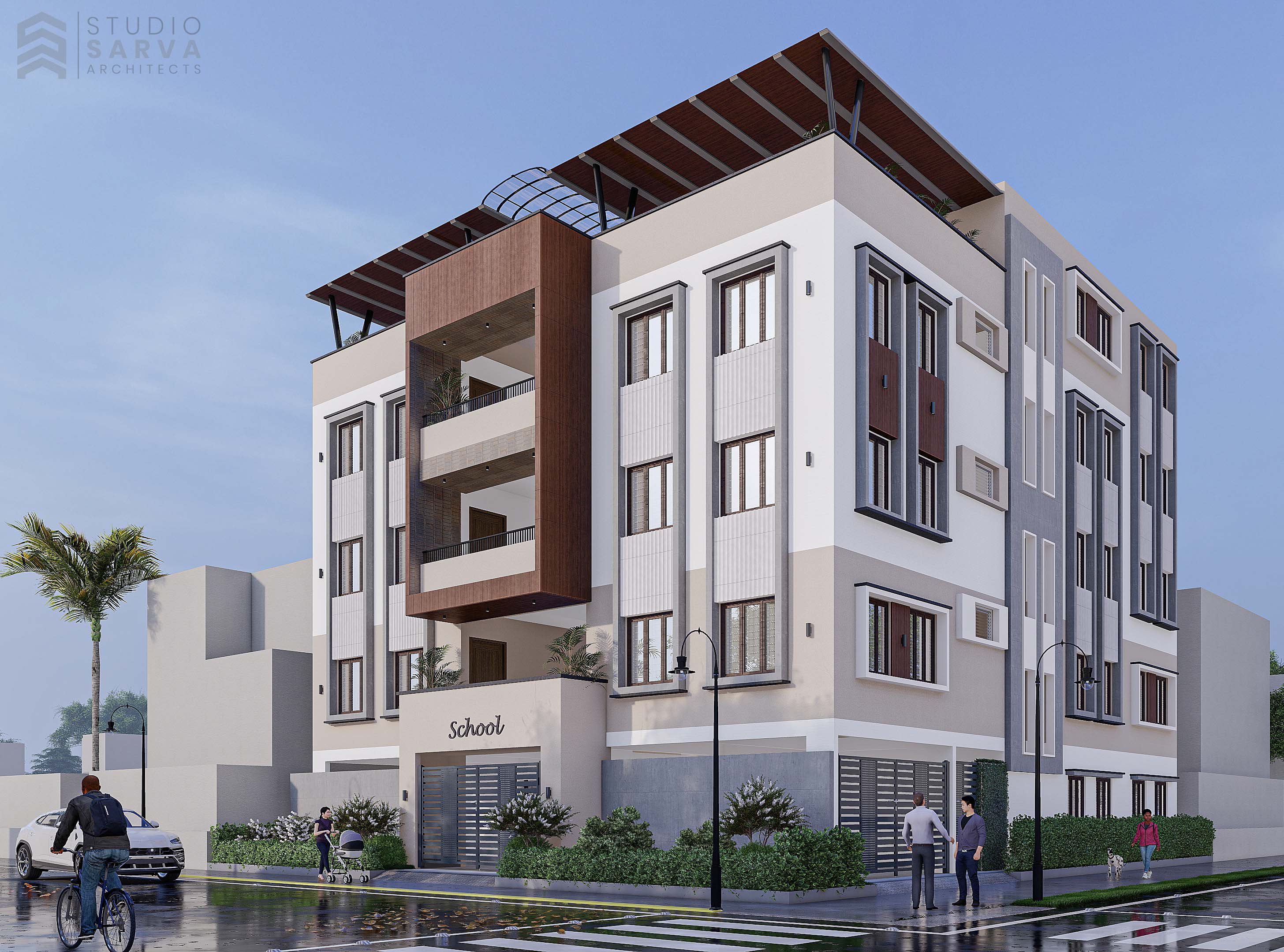 A forward-thinking, functional school design, balancing modern architecture with a conducive learning environment. With precise 3D renderings, practical elevation designs, and thoughtful interior planning, the project creates an inspiring, student-focused space for education..